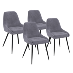À la recherche de nouvelles chaises pour moderniser votre pièce de vie ? Craquez pour ce lot de 4 chaises en velours gris THALYA avec demi-accoudoirs ! Leur design vintage et élégant s'adaptera à tous les styles de décoration. Idéales pour apporter une touche sophistiquée à votre intérieur, les chaises THALYA sont dotées d'un design original et tendance qui s'associe à merveille avec leur coloris gris clair intemporel et chaleureux.Partagez de bons repas en famille ou entre amis confortablement installés grâce à leur coussin en velours qui leur offre un aspect cossu et moelleux. Les demi-accoudoirs de la chaise apportent un look contemporain raffiné à votre salle à manger et proposent une assise enveloppante très agréable. Pratiques et fonctionnelles, les chaises peuvent aussi être dissociées dans d'autres pièces de la maison : donnez du style à votre chambre en disposant une chaise devant votre coiffeuse ou utilisez-la en tant que chaise de bureau pour un coin travail chic et cocooning !Leurs pieds fins en métal noir mettent en valeur les lignes épurées de ces chaises et leur assurent stabilité et robustesse.Sublimez votre coin repas en un tour de main grâce à ce lot de 4 chaises avec accoudoirs THALYA en velours gris clair !Dimensions des chaises THALYA en velours grisDimensions globales : Longueur 47,5 cm x largeur 54 cm x Hauteur 79 cmDimensions de l'assise : L. 47,5 x l. 39 x H. 49 cmHauteur du dossier : 35,5 cmÉpaisseur du coussin : 5 cmMatériaux : assise en velours et pieds en métalColoris : gris clairVendues en lot de 4 chaisesÀ monter soi-mêmeCe modèle est également disponible dans d'autres coloris :- Lot de 4 chaises THALYA en velours gris foncé- Lot de 4 chaises THALYA en velours bleuRetrouvez l'ensemble de nos chaises en velours et de notre collection de meubles vintage sur notre boutique en ligne !