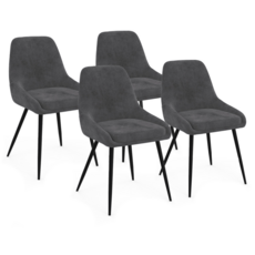 À la recherche de nouvelles chaises pour moderniser votre pièce de vie ? Craquez pour ce lot de 4 chaises en velours gris THALYA avec demi-accoudoirs ! Leur design vintage et élégant s'adaptera à tous les styles de décoration. Idéales pour apporter une touche sophistiquée à votre intérieur, les chaises THALYA sont dotées d'un design original et tendance qui s'associe à merveille avec leur coloris gris foncé intemporel et chaleureux.Partagez de bons repas en famille ou entre amis confortablement installés grâce à leur coussin en velours qui leur offre un aspect cossu et moelleux. Les demi-accoudoirs de la chaise apportent un look contemporain raffiné à votre salle à manger et proposent une assise enveloppante très agréable. Pratiques et fonctionnelles, les chaises peuvent aussi être dissociées dans d'autres pièces de la maison : donnez du style à votre chambre en disposant une chaise devant votre coiffeuse ou utilisez-la en tant que chaise de bureau pour un coin travail chic et cocooning !Leurs pieds fins en métal noir mettent en valeur les lignes épurées de ces chaises et leur assurent stabilité et robustesse.Sublimez votre coin repas en un tour de main grâce à ce lot de 4 chaises avec accoudoirs THALYA en velours gris foncé !Dimensions des chaises THALYA en velours grisDimensions globales : Longueur 47,5 cm x largeur 54 cm x Hauteur 79 cmDimensions de l'assise : L. 47,5 x l. 39 x H. 49 cmHauteur du dossier : 35,5 cmÉpaisseur du coussin : 5 cmMatériaux : assise en velours et pieds en métalColoris : gris foncéVendues en lot de 4 chaisesÀ monter soi-mêmeCe modèle est également disponible dans d'autres coloris :- Lot de 4 chaises THALYA en velours gris clair- Lot de 4 chaises THALYA en velours bleuRetrouvez l'ensemble de nos chaises en velours et de notre collection de meubles vintage sur notre boutique en ligne !