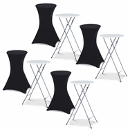 Une réception ou une cérémonie à organiser ? Optez pour ce lot de 4 tables hautes pliantes de bar façon mange-debout et ses 4 housses noires pour recevoir vos invités en toute simplicité.