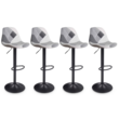 Vous souhaitez apporter une ambiance contemporaine et chaleureuse à votre intérieur ? Laissez vous séduire par ces 4 tabourets de bar KARL design original patchwork !Fabriquée avec un revêtement en polyester et un pied en métal noir, chaque chaise haute pivote à 360 degrés. Très stable avec son socle rond de 38,5 cm, chaque siège de bar possède un repose-pieds large pour garantir un maximum de confort.Apportez une touche déco chic à votre pièce à vivre grâce au look unique de ces tabourets ! En effet, cette chaise haute de bar est conçue avec une assise rembourrée et un pied en métal noir donnant un aspect vintage et tendance à votre lot de 4 tabourets.Pratiques, ces chaises hautes sont réglables en hauteur grâce à leur vérin à gaz et s'adaptent à tous les plans de travail, bars, îlots et tables hautes. Alors n'attendez plus et faites vous plaisir avec ce lot de 4 tabourets de bar élégants pour offrir un look moderne et cosy à votre intérieur !Dimensions des tabourets de bar KARL design patchworksDimensions globales : Longueur 39 cm x largueur 39 cm x 104 cm (dossier compris)Dimensions assise : L. 38 x pr. 32 x H. 25 cmHauteur de l'assise réglable : 57 à 79 cm Diamètre de la base du pied : 39 cmMatériaux : Revêtement en polyester, pied en métalColoris : Patchworks noirs, gris et blancs pied noirVendu en lot de 4 tabouretsÀ monter soi-mêmeRetrouvez l'ensemble de notre collection contemporaine sur notre boutique en ligne !