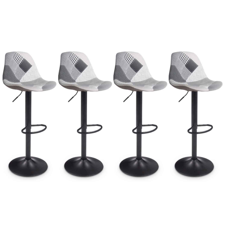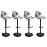 Lot de 4 tabourets de bar KARL design patchworks noirs, gris et blancs pied noir