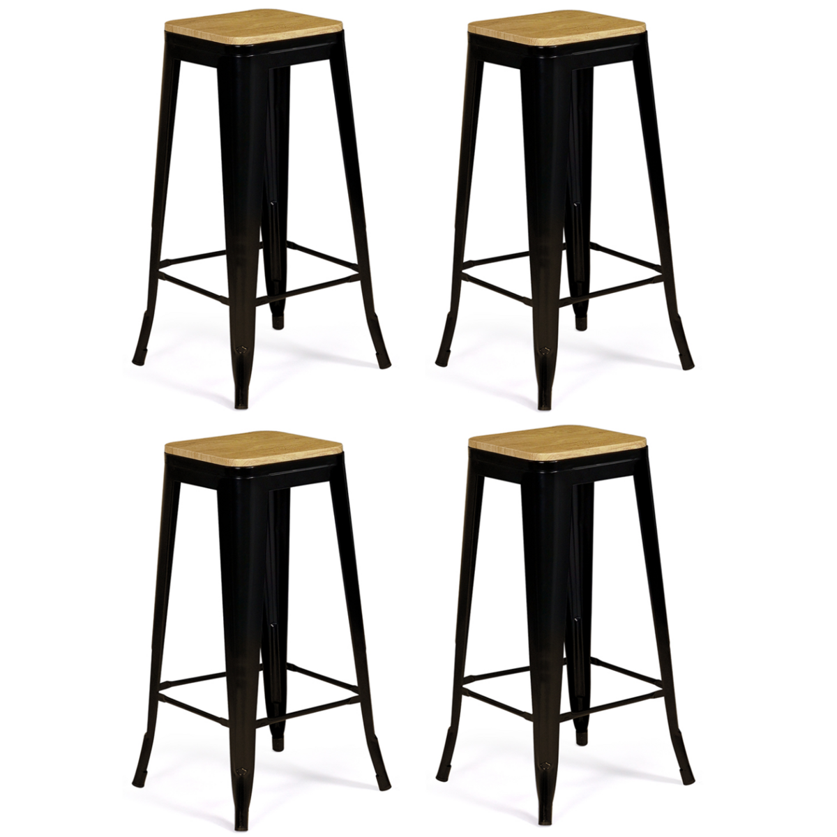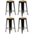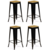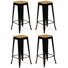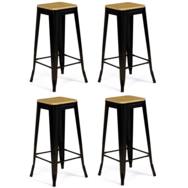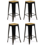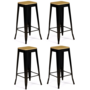 Lot de 4 tabourets de bar LENY métal noir mat assise bois empilable aspect brut factory