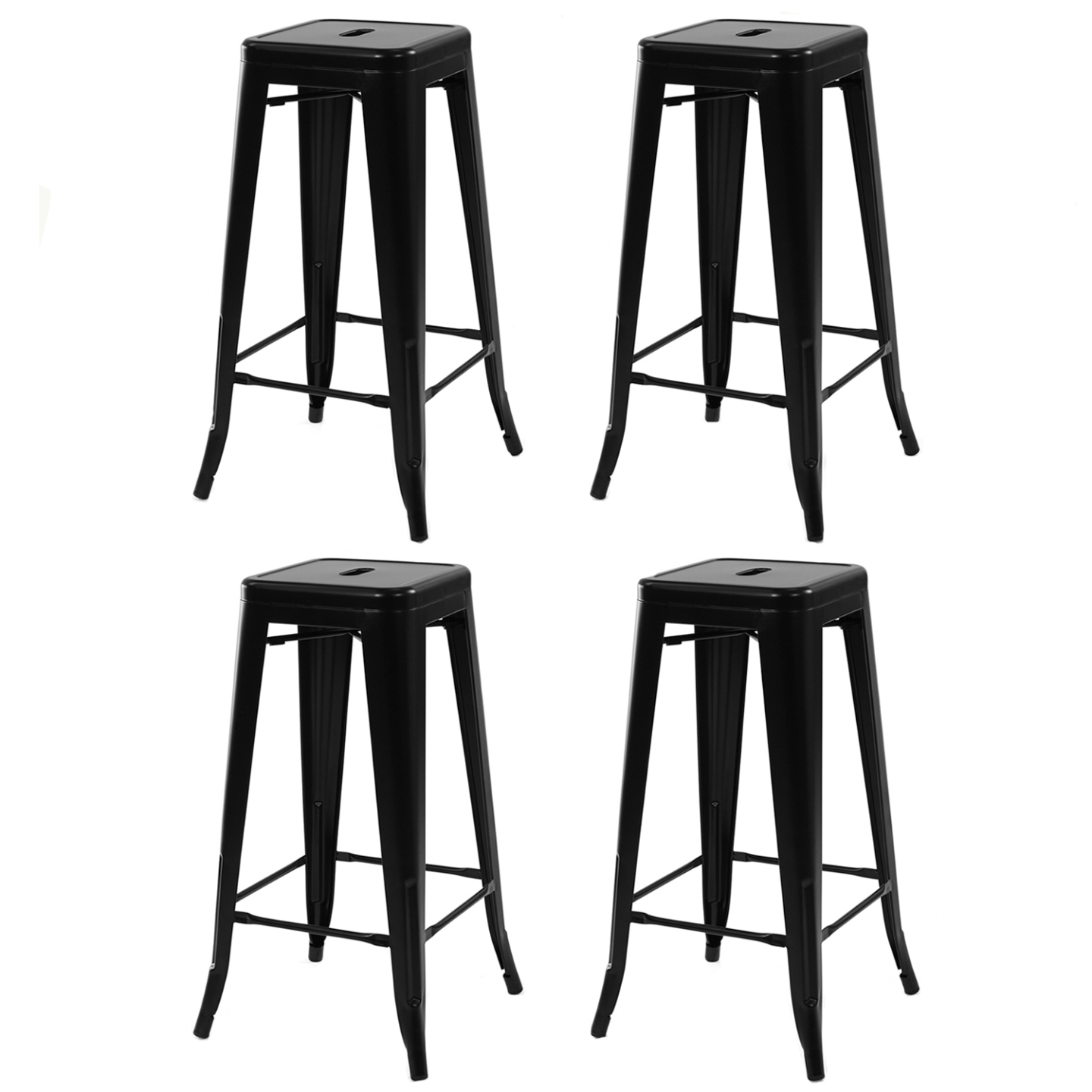 Lot de 4 tabourets de bar LENY métal noir mat empilable aspect brut factory