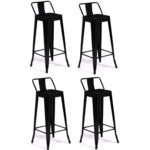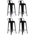 Lot de 4 tabourets de bar LENY métal noir mat et dossier aspect brut factory