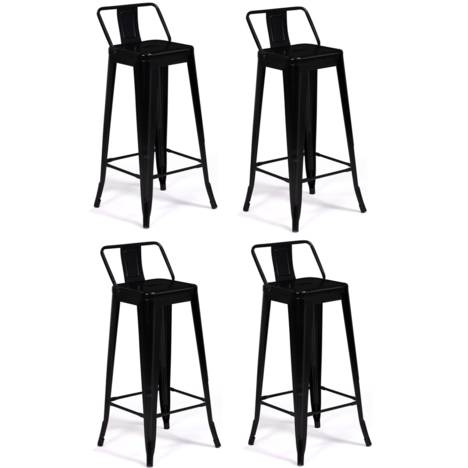 Le style industriel fait son entrée dans votre cuisine ou votre salon grâce au lot de 4 tabourets de bar avec dossier. Les tabourets LENY s'associeront facilement à la décoration de votre pièce, autour d'un îlot central ou d'une table haute.Les tabourets sont entièrement conçus en métal noir, cette