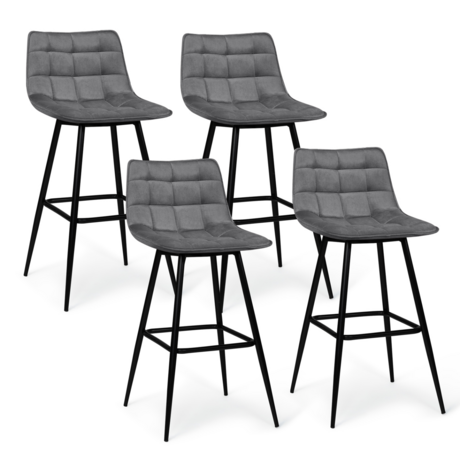 Lot de 4 tabourets de bar MADY en velours gris clair