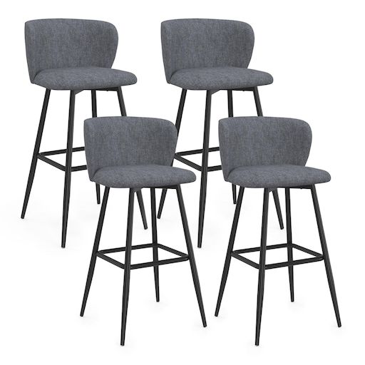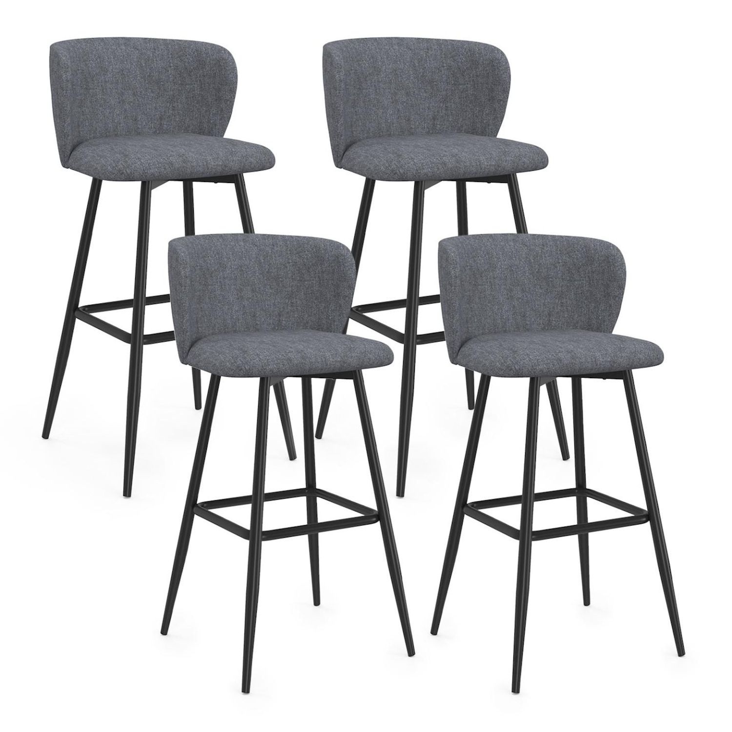 Lot de 4 tabourets de bar OMBLINE assise en tissu gris foncé et pieds en métal noir