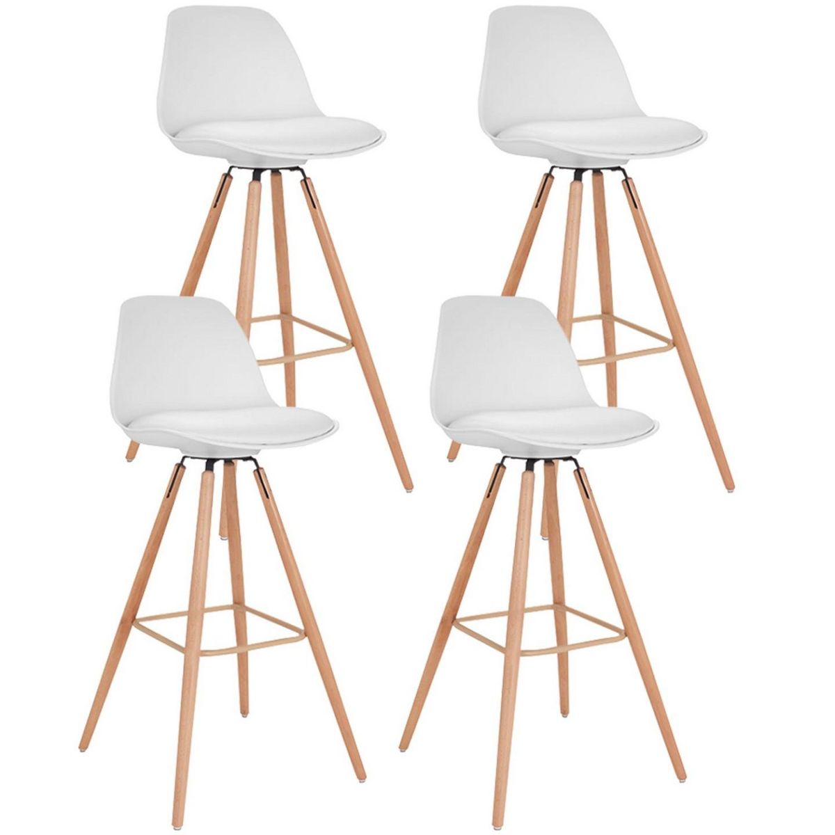 Avec leur design scandinave, ces 4 tabourets de bar SARA ultra-tendances apporteront une ambiance à la fois contemporaine et chaleureuse à votre intérieur !Idéales dans une salle à manger ou une cuisine américaine, ces chaises hautes de bar confortables trouveront forcément leur place dans toutes les pièces de la maison.Elles offrent un excellent confort d'assise avec leur dossier courbé en polypropylène et leur assise rembourrée.Le design nordique s'invite chez vous !Parfaitement stables, elles sont munies de 4 pieds en bois aux finitions travaillées.Dimensions du lot de 4 tabourets de bar SARA blanc Dimensions totales : Longueur 38,5 cm x largeur 33 cm x Hauteur 92 cmDimensions de l'assise : Longueur 38,5 x profondeur 33 cmHauteur du dossier : 26 cmVendu en lot de 4 tabourets coloris blancsÀ monter soi-mêmeModèle disponible dans différents coloris :- NOIR- GRIS FONCE- PATCHWORKS MULTI-COULEURS- PATCHWORKS NOIRS, GRIS ET BLANCS- PATCHWORKS BLEUS