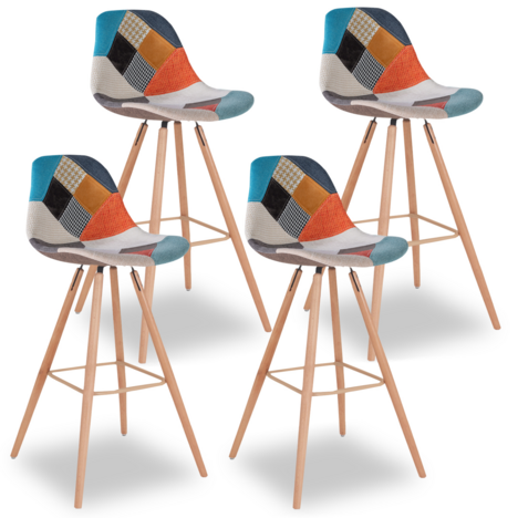 Lot de 4 tabourets de bar SARA motifs patchworks multi-couleurs