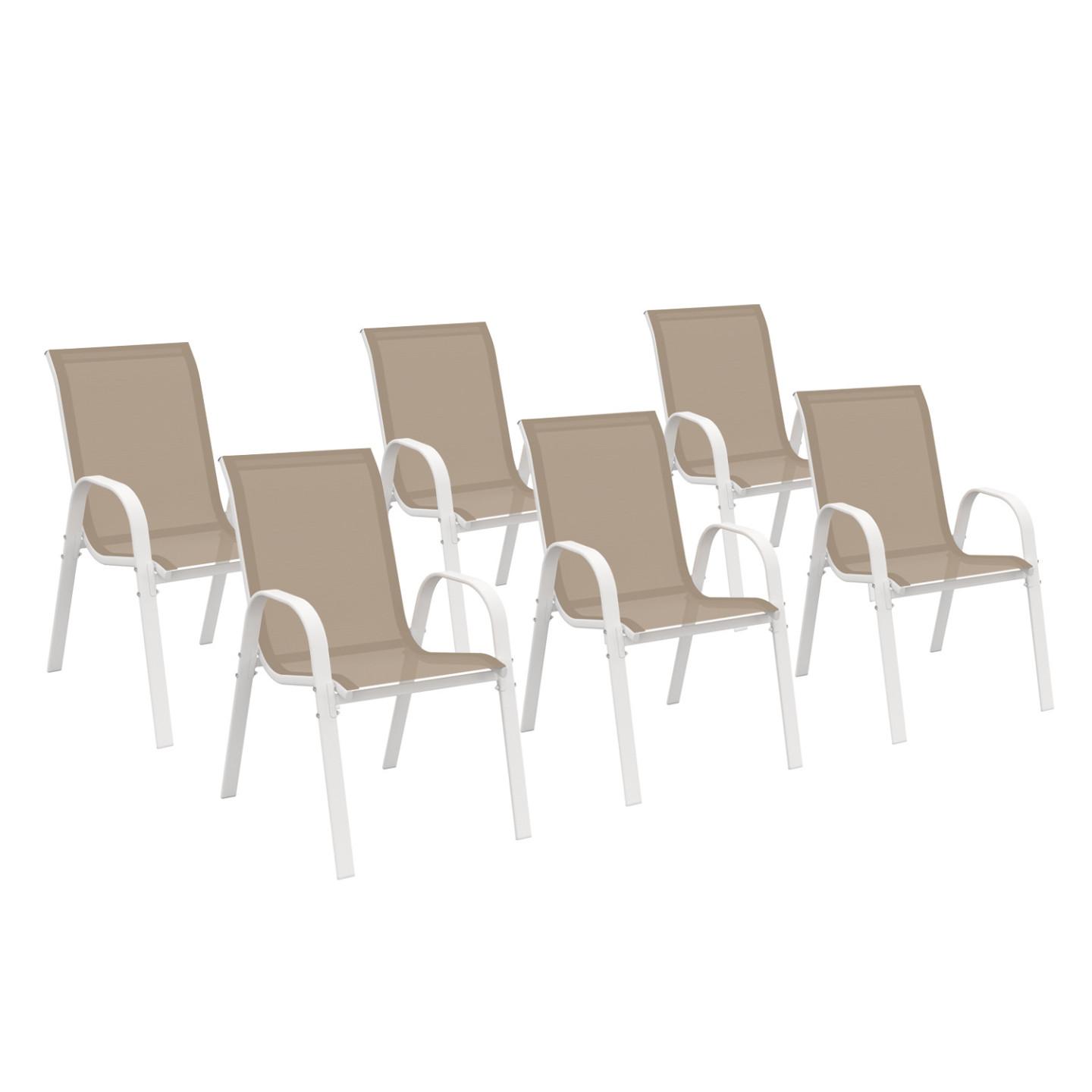 Lot de 6 chaises de jardin LYMA métal et textilène empilables blanc et beige