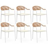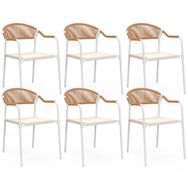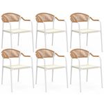 Lot de 6 chaises de jardin MADEIRA métal blanc cordage et textilène beige et rotin clair