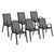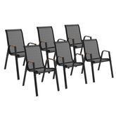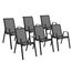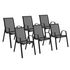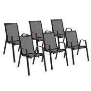 Lot de 6 chaises de jardin NOUMEA métal et textilène empilables noir et bois