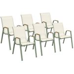Lot de 6 chaises de jardin NOUMEA métal et textilène empilables vert et bois