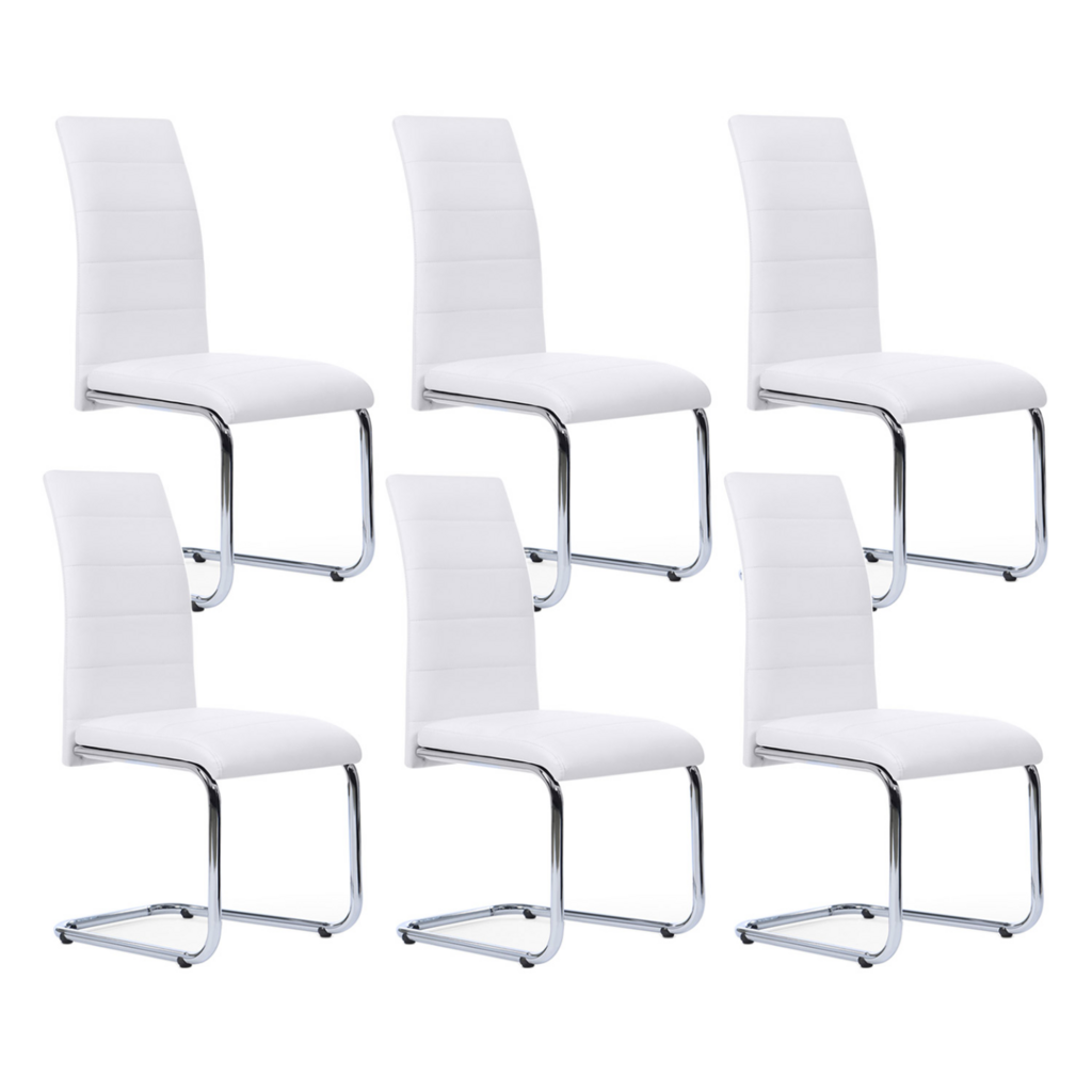 Invitez le design contemporain dans votre salle à manger avec ce lot de 6 chaises MIA blanches. Ces 6 chaises aux lignes épurées s'adapteront parfaitement à votre séjour et lui apporteront une touche moderne et élégante !La structure de cette chaise et ses pieds en métal chromé vous offrent une vrai