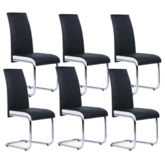Invitez le design contemporain dans votre salle à manger avec ce lot de 6 chaises MIA noires liseré blanc. Ces 6 chaises aux lignes épurées s'adapteront parfaitement à votre séjour et lui apporteront une touche moderne et élégante !La structure de cette chaise et ses pieds en métal chromé vous offrent une vraie stabilité et une véritable solidité. Son assise et son dossier, moelleux et rembourrés, en mousse recyclée, vous garantissent un confort optimal, idéal pour des repas conviviaux entre amis ou en famille.Le revêtement de cette chaise est en polyuréthane et les pieds en métal chromé. Apportez un look épuré et moderne à votre pièce de vie grâce à son coloris bicolore noir et blanc. Très design et tendance, ce lot de 6 chaises MIA noires avec liseré blanc offrira une touche de modernité à votre décoration, le tout à petit prix !Dimensions des chaises MIA noires liseré blancDimensions globales : Longueur 43,5 cm x largueur 54 cm x Hauteur 98 cmDimensions de l'assise : L. 43 x l. 43,5 x H. 46 cmHauteur des pieds : 41 cmRevêtement en polyuréthane et pieds en métal chroméColoris : noir et liseré blancÀ monter soi-mêmeLe lot de 6 chaises est aussi disponible en coloris blanc.