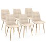 Lot de 6 chaises MILA en velours beige et pieds effet bois pour salle à manger