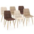 Lot de 6 chaises MILA en velours mix color taupe x2, beige x2, marron x2 et pieds effet bois pour salle à manger