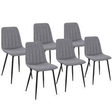 Vous recherchez des chaises modernes et élégantes pour meubler votre salle à manger ? Avec leur design contemporain aux lignes épurées, les chaises MIRA en tissu gris clair apporteront une ambiance cosy et chaleureuse à votre intérieur.Grâce à leur assise en tissu matelassé, et leur dossier de 45 cm de hauteur qui vous garantira un bon maintien du dos, vous serez installé confortablement et pourrez profiter sans crainte de longs repas de famille et de bons moments conviviaux entre amis.Le design élégant des coutures des chaises MIRA, et leur coloris gris clair s'adaptent à tous les styles de décoration. Que votre intérieur soit plutôt urbain, contemporain ou rustique, ces chaises trouveront facilement leur place chez vous !Leurs 4 pieds en métal noir mat leur assurent robustesse et stabilité, tout en soulignant le look résolument moderne et design de ces chaises de salle à manger.Il ne vous reste plus qu'à vous installer confortablement autour de la table !Dimensions des chaises MIRA en tissu gris clairDimensions globales : Longueur 46 cm x largeur 55 cm x Hauteur 88 cmDimensions assise : L. 46 x l. 41 x H. 45 cmMatériaux : Assise en tissu et pieds en métalColoris : Gris clairVendues en lot de 6 chaisesÀ monter soi-mêmeCe modèle est également disponible dans différents coloris : - Lot de 6 chaises MIRA en tissu gris foncé- Lot de 6 chaises MIRA en tissu bleuRetrouvez également l'ensemble de nos chaises en tissu sur notre boutique en ligne !