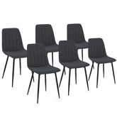 Vous recherchez des chaises modernes et élégantes pour meubler votre salle à manger ? Avec leur design contemporain aux lignes épurées, les chaises MIRA en tissu gris foncé apporteront une ambiance cosy et chaleureuse à votre intérieur.Grâce à leur assise en tissu matelassé, et leur dossier de 45 cm de hauteur qui vous garantira un bon maintien du dos, vous serez installé confortablement et pourrez profiter sans crainte de longs repas de famille et de bons moments conviviaux entre amis.Le design élégant des coutures des chaises MIRA, et leur coloris gris foncé s'adaptent à tous les styles de décoration. Que votre intérieur soit plutôt urbain, contemporain ou rustique, ces chaises trouveront facilement leur place chez vous !Leurs 4 pieds en métal noir mat leur assurent robustesse et stabilité, tout en soulignant le look résolument moderne et design de ces chaises de salle à manger.Il ne vous reste plus qu'à vous installer confortablement autour de la table !Dimensions des chaises MIRA en tissu gris foncéDimensions globales : Longueur 46 cm x largeur 55 cm x Hauteur 88 cmDimensions assise : L. 46 x l. 41 x H. 45 cmMatériaux : Assise en tissu et pieds en métalColoris : Gris foncéVendues en lot de 6 chaisesÀ monter soi-mêmeCe modèle est également disponible dans différents coloris : - Lot de 6 chaises MIRA en tissu gris clair - Lot de 6 chaises MIRA en tissu gris bleuRetrouvez également l'ensemble de nos chaises en tissu sur notre boutique en ligne !
