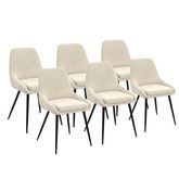 À la recherche de nouvelles chaises pour moderniser votre pièce de vie ? Craquez pour ce lot de 6 chaises en velours beige THALYA avec demi-accoudoirs ! Leur design vintage et élégant s'adaptera à tous les styles de décoration. Idéales pour apporter une touche sophistiquée à votre intérieur, les chaises THALYA sont dotées d'un design original et tendance qui s'associe à merveille avec leur coloris beige intemporel et chaleureux.Partagez de bons repas en famille ou entre amis confortablement installés grâce à leur coussin en velours qui leur offre un aspect cossu et moelleux. Les demi-accoudoirs de la chaise apportent un look contemporain raffiné à votre salle à manger et proposent une assise enveloppante très agréable. Pratiques et fonctionnelles, les chaises peuvent aussi être dissociées dans d'autres pièces de la maison : donnez du style à votre chambre en disposant une chaise devant votre coiffeuse ou utilisez-la en tant que chaise de bureau pour un coin travail chic et cocooning !Leurs pieds fins en métal noir mettent en valeur les lignes épurées de ces chaises et leur assurent stabilité et robustesse.Sublimez votre coin repas en un tour de main grâce à ce lot de 6 chaises avec accoudoirs THALYA en velours beige !Dimensions des chaises THALYA en velours beigeDimensions globales : Longueur 47,5 cm x largeur 54 cm x Hauteur 79 cmDimensions de l'assise : L. 47,5 x l. 39 x H. 49 cmHauteur du dossier : 35,5 cmÉpaisseur du coussin : 5 cmMatériaux : assise en velours et pieds en métalColoris : beigeVendues en lot de 6 chaisesÀ monter soi-mêmeCe modèle de 6 chaises THALYA est disponible en velours gris foncé. Il est également disponible en lot de 4 et dans d'autres coloris :- Lot de 4 chaises THALYA en velours beige- Lot de 4 chaises THALYA en velours gris foncé- Lot de 4 chaises THALYA en velours gris clair- Lot de 4 chaises THALYA en velours bleu- Lot de 4 chaises THALYA en velours gris et bleu- Lot de 4 chaises THALYA en velours gris, bleu et jauneRetrouvez l'ensemble de nos chaises en velours et de notre collection de meubles vintage sur notre boutique en ligne !