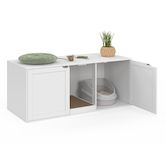 Maison de toilette chat XL cache-litière 2 portes et griffoir bois blanc