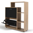 Meuble à chaussures 12 paires KLARK imitation hêtre 2 portes noires avec étagères