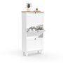 Craquez pour le charme authentique du meuble à chaussures ACHILLE 3 portes au style campagne chic. Avec sa capacité de 18 paires de chaussures, toute la famille trouvera une place pour garder ses chaussures à l'abri de la poussière dans ce meuble compact !Derrière chacune des 3 portes de ce meuble d'entrée, l'espace de rangement est compartimenté à l'aide d'une cloison intermédiaire, permettant ainsi de disposer jusqu'à 6 paires de chaussures par portes (soit une capacité de 18 paires au total) ! Chaque membre de la famille aura ainsi droit à son espace dédié !Avec ses coloris intemporels et ses lignes sobres et épurées, le meuble à chaussures ACHILLE se mariera avec tous les types d'intérieurs !Bicolore imitation hêtre et blanc, les coloris tendances de ce meuble à chaussures feront de votre vestibule un espace accueillant et bien rangé !De plus, ses encadrements moulurés et ses boutons noirs apportent une touche de caractère et d'élégance rustique, renforçant le charme authentique de ce meuble intemporel.Ne laissez plus traîner vos paires de chaussures et gardez-les à l'abri des regards dans ce meuble de rangement moderne et discret !Dimensions du meuble à chaussures ACHILLE 3 PORTESDimensions globales : Longueur 60 cm x largueur 23,5 cm x Hauteur 118 cmDimensions des portes : L. 54 x H. 34 cmDimensions des pieds : L. 4 x l. 3 x H. 10 cmDimensions des boutons de poignées : D. 2,5 x H. 2 cmEncadrement : 4 cmMatériaux : Panneaux de particules Coloris : Bois et blanc3 portes battantesÀ monter soi-mêmeRetrouvez l'intégralité de nos meubles à chaussures ainsi que nos vestiaires et meubles d'entrée sur notre boutique en ligne !