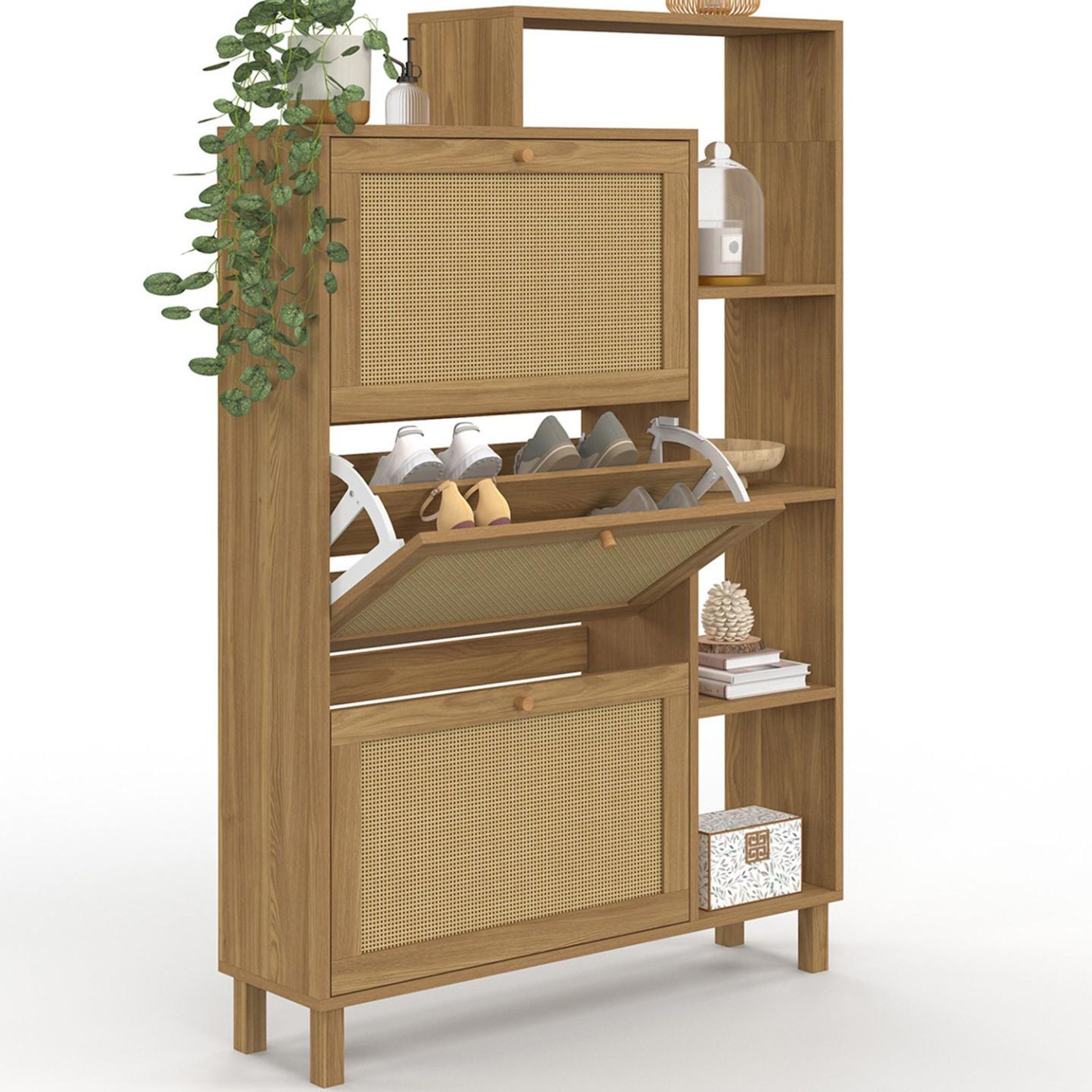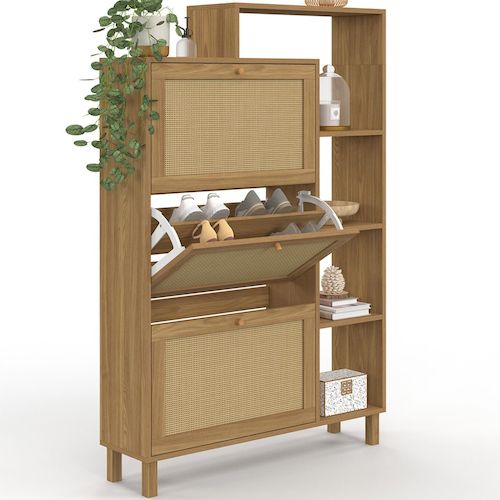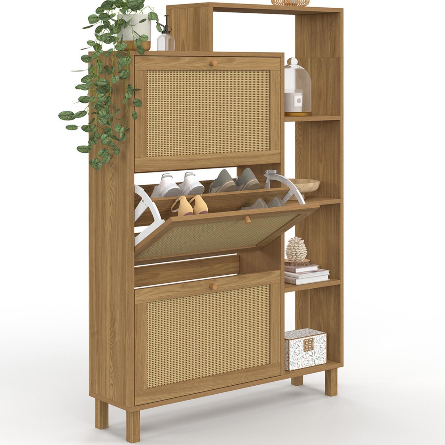 Meuble à chaussures 18 paires HANAE 3 portes effet naturel cannage avec étagère