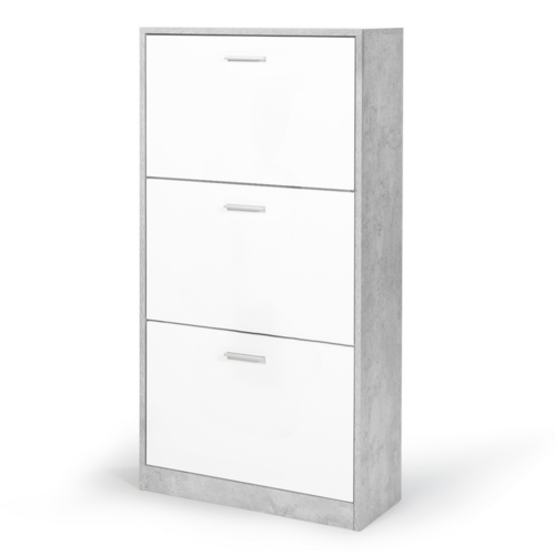 Meuble à chaussures 18 paires KLARK effet béton 3 portes blanches