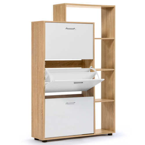Meuble à chaussures 18 paires KLARK imitation hêtre 3 portes blanches avec étagère