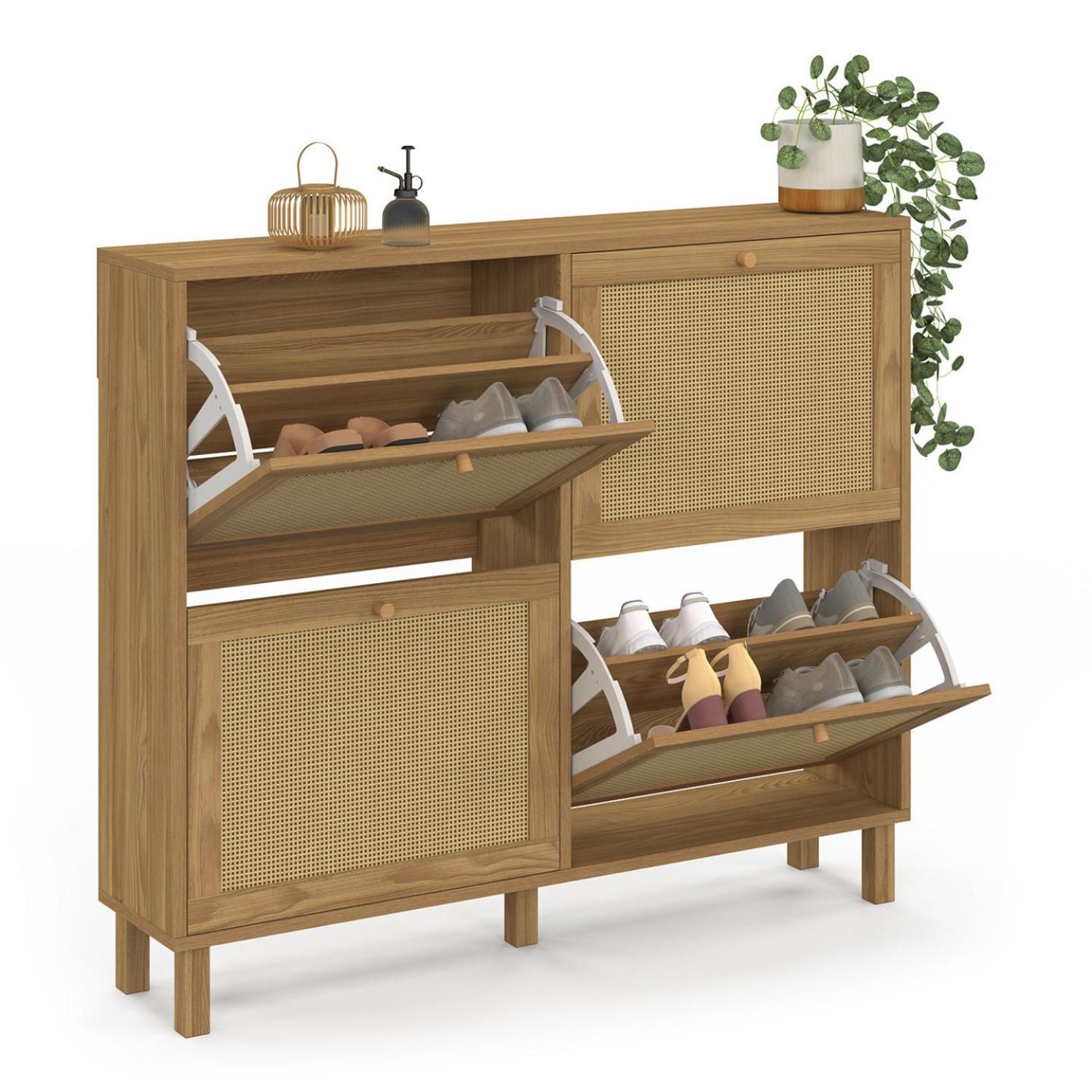 Meuble à chaussures 20 paires HANAE 4 portes effet naturel cannage