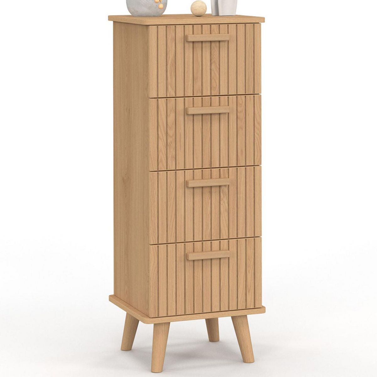 Meuble d'appoint 4 tiroirs JULIETTE 30 cm chiffonnier effet lattes tasseau bois coloris chêne
