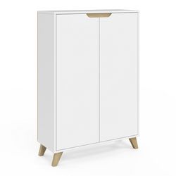 Envie d'une nouvelle ambiance pour votre intérieur ? Optez pour le look nordique de l'armoire HELSINKI 2 portes pour créer une ambiance cocooning dans votre chambre à coucher ! Son design scandinave aux lignes épurées apportera douceur et modernité dans votre dressing ou votre bureau. Multifonction, l'armoire de chambre HELSINKI peut aussi servir de meuble de rangement dans votre bureau pour y alter vos documents ou y entreposer vos souvenirs, bibelots ou jeux de société. Ses 3 étagères vous offrent de grands espaces de rangement pour toutes vos affaires. Vous pourrez ranger vos affaires du quotidien comme vous en servir pour une chambre d'enfant, le rendu sobre et scandinave sera au rendez-vous. Son large plateau supérieur peut aussi servir de support à un miroir, de petites plantes ou tout autre objet de décoration pour un intérieur aménagé à votre goût. Le design de ce meuble blanc et ses encoches effet bois aux formes arrondies, confèrent à la commode un look tendance et élégant. Ses grands pieds fuselés de 10 cm de hauteur garantissent quant à eux stabilité et robustesse dans le temps. Alors n'attendez plus ! Apportez une touche chaleureuse à votre intérieur tout en optimisant votre espace de rangement avec le meuble de rangement HELSINKI. Dimensions du meuble de rangement 2 portes HELSINKIDimensions globales : Longueur 75 cm x largeur 30 cm x Hauteur 110cm2 étagèresEspace entre les étagères : 31.5 cmHauteur pied : 10 cmPoignée en forme d'encoche : 11 x 3.5 cmMatériaux : Panneau de particules de bois (PB)Coloris : blancÀ monter soi-mêmeRetrouvez l'intégralité de notre collection scandinave ainsi que les différents modèles d'armoires que nous proposons sur notre boutique en ligne !
