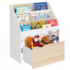 Meuble de rangement bibliothèque enfant MANA 3 étagères et 1 bac sur roulettes blanc et hêtre