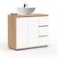Meuble sous lavabo salle de bain TOMI avec placard et 3 tiroirs façon hêtre et blanc