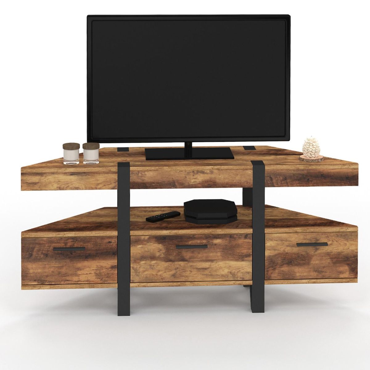 Meuble TV 110 cm d'angle AUSTRIA bois pied épingle avec tiroirs