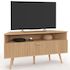 Meuble TV 110 cm d'angle JULIETTE 1 porte effet lattes coloris chêne