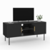 Meuble TV 110 cm MARCEL 2 portes lattes tasseau bois noir