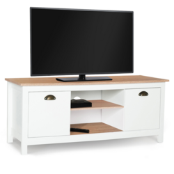 Offrez une place de choix à votre télévision, et à ses accessoires, grâce à ce meuble TV au style campagne et design à la fois. Ses coloris chics et élégants lui permettent de s'intégrer à n'importe quel intérieur, pour une décoration chaleureuse et tendance.Entretien minimum, robustesse, solutions
