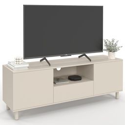 Meuble TV 140 cm BERTILLE 3 portes bois beige