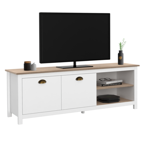 Meuble TV 140 cm campagne ISIS bois et blanc