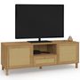 Meuble TV 140 cm vintage HANAE 3 portes effet naturel cannage
