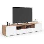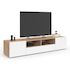 Meuble TV 180 cm ELI bois façon hêtre portes blanches