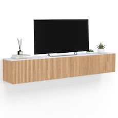 Vous êtes à la recherche d'un meuble TV pratique et tendance ? Voici le meuble télé idéal qui répondra à tous vos besoins : le meuble TV suspendu effet marbre et lattes bois chêne JULIETTE !L'alliance entre l'effet marbre et les lattes bois chêne sur les portes apporte un esprit naturel et chaleureux à votre salon. Il saura s'accorder à tous les types de décorations. Esthétique et fonctionnel, le meuble TV est muni de deux portes abattantes pour ranger vos livres, votre box et vos effets plus personnels à l'abri des regards. Profitez de son long plateau de 180 cm pour accueillir un écran plat jusqu'à 70 pouces ainsi que télécommandes ou petits objets de décoration. Sa structure en panneaux de particules de bois vous assure stabilité et robustesse. Un trou passe-câbles déjà percé au centre du meuble de rangement vous permet d'installer aisément tout votre matériel hi-fi et vidéo. Des attaches murales sont incluses afin que vous puissiez le suspendre au mur en un clin d'œil ! Ce meuble TV avec portes effet lattes est l'addition parfaite pour tout intérieur moderne en combinant esthétique et praticité. Ne manquez pas cette opportunité de rehausser votre espace de vie !Dimensions du meuble TV suspendu JULIETTE 180 cmDimensions globales : Longueur 180 cm x largeur 30 cm x Hauteur 30 cmDimensions intérieures d'un placard : L. 88 x l. 25,5 x H. 27 cm Matériaux : panneaux de particules de bois (PB) et portes en MDFAttaches murales inclusesColoris : bois et effet marbreÀ monter soi-mêmeRetrouvez également l'ensemble de nos meubles modernes sur notre boutique en ligne !
