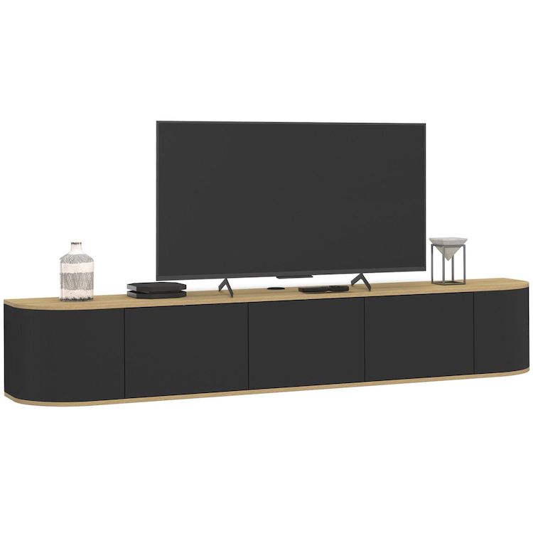 Meuble TV 180 cm suspendu LEORA 3 portes bois et noir