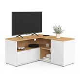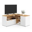 Meuble TV 90 x 90 cm d'angle BALTAZAR façon hêtre et blanc