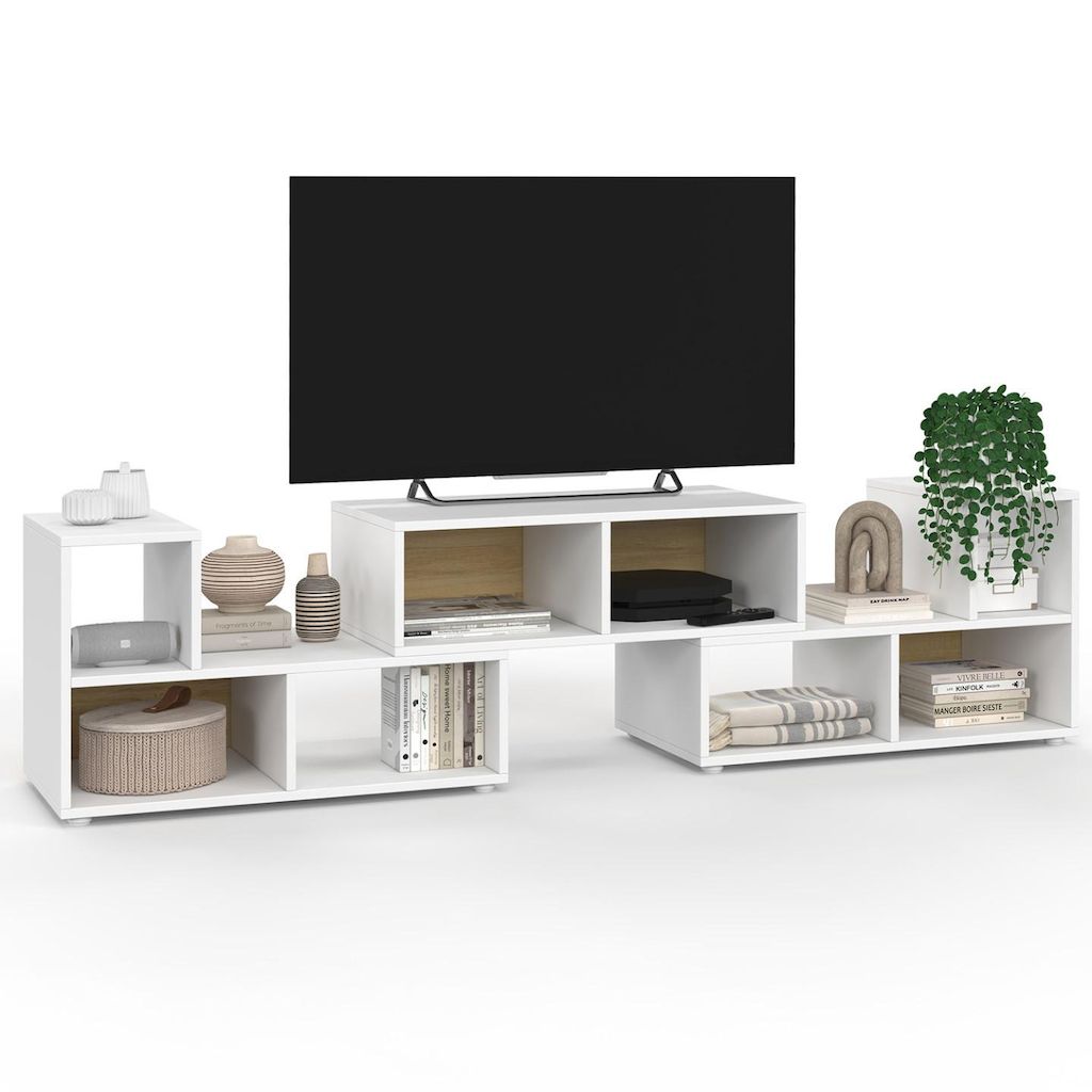 Meuble TV combiné 3 pièces modulables LEONARD pour salon chambre et bureau, 140-205 x 30 x 43 cm