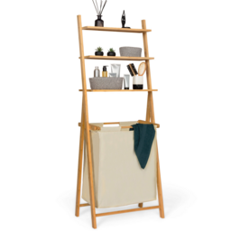 Ordonnez et optimisez l'espace de votre salle de bain ou de votre buanderie grâce à ce panier à linge double compartiment avec étagères en bambou. Profitez de son format compact pour garder votre espace toujours propre et bien rangé.Fabriqué en bambou, ce bac à linge avec étagères apportera une touche exotique à votre salle de bain tout en permettant de stocker votre linge.Grâce à son bac linge double compartiment en tissu écru, vous pourrez trier votre linge et faciliter les machines. Le panier est détachable et lavable à basse température. De plus, le bac est coulissant pour faciliter l'accès à votre linge.Ses trois étagères sont idéales pour ranger vos accessoires de toilette, y déposer de la décoration comme de petites bougies, plantes artificielles ou autres objets !Ses lignes épurées et son bac double compartiment coloris écru lui confèrent un design sobre et naturel pour s'intégrer à la perfection dans votre salle de bain.Apportez style et rangement à votre pièce d'eau avec ce bac à linge double et 3 étagères en bambou !Dimensions du panier à linge double compartiment LANADimensions globales : Longueur 57 cm x largeur 35 cm x Hauteur 152 cmDimensions des sacs : L. 46 x l. 26,3 x H. 60 cmCapacité des sacs : 34,5 litres x2Dimensions du 1 er plateau : L. 53,5 x l. 26 x H. 1,4 cmDimensions du 2 ème plateau : L. 53,5 x l. 21 x H. 1,4 cmDimensions du 3 ème plateau : L. 53,5 x l. 16,5 x H. 1,4 cmDécouvrez aussi le porte-serviettes en bambou LANA et l'ensemble de nos meubles pour les pièces d'eau sur notre boutique en ligne !