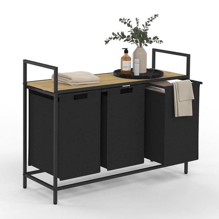 Panier à linge 3 bacs DETROIT tissu noir design industriel