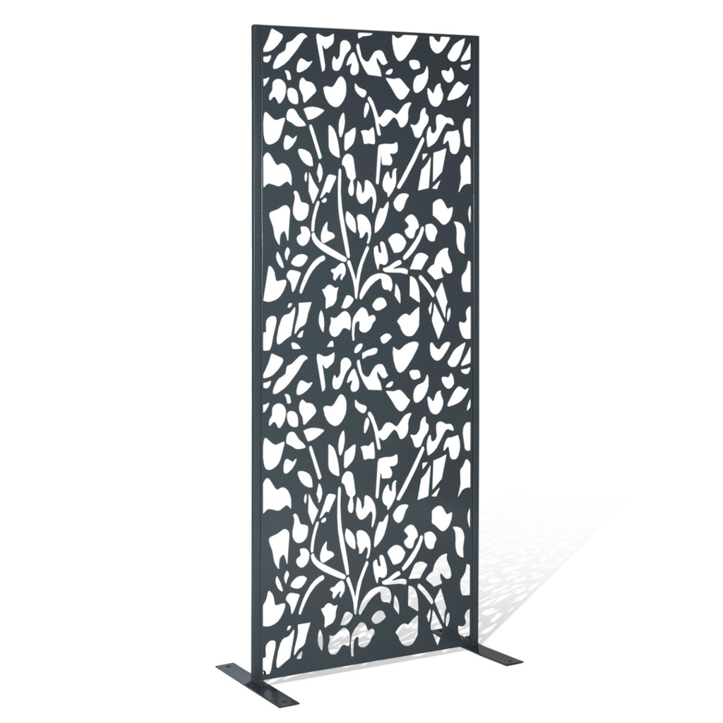 Apportez une touche déco à votre extérieur grâce à ce panneau en métal ajouré. Son design ultra moderne habillera votre terrasse ou votre mur avec élégance. Fabriqué en métal ajouré, le panneau universel FLOWER est résistant aux intempéries et ne demande aucun entretien. Vous n'aurez pas à vous souciez de sa longévité.Conçu pour s'adapter à votre environnement extérieur, ce panneau, en plus d'être stable, vous propose 4 modes de fixation : choisissez de le fixer directement au sol de votre terrasse ou sur votre pelouse ou au contraire, accrochez-le à votre mur ! Vous disposez d'un panneau en bois composite ? Vous pouvez également insérer le panneau FLOWER entre vos planches. Résistant et durable, vous pourrez longuement profiter du design du panneau décoratif universel. Ses formes fleuries ajourées sont ultra modernes et apportent une note tendance à votre extérieur ! Notre astuce : faîtes grimper vos plantes le long du panneau FLOWER pour un effet végétal garanti ! Dimensions du panneau décoratif FLOWERDimensions globales : largeur 50 CM x Hauteur 150 CM x épaisseur 1,8 CMDimensions des pieds : Longueur 40 CM x largeur 5 CM x Hauteur 4 MMÉpaisseur de la structure : 18 x 18 x 1 MMÉpaisseur du métal : 0,8 x 1,8 MMPeinture sprayCouleur : gris 425CCe modèle convient aux panneaux occultants disposant d'une épaisseur de lame de 1,8 CM.Découvrez nos autres panneaux occultants sur notre boutique en ligne !